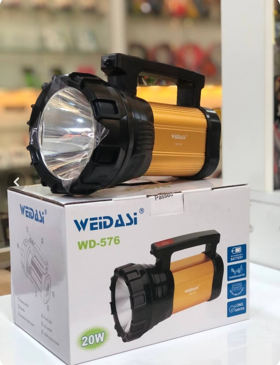 چراغ قوه WEIDASI مدل WD-576 (WEDAJ) یک چراغ حرفهای با طراحی ویژه برای کاربریهای سنگین است. با قدرت نوردهی بسیار بالا (معادل 200W)، این چراغ قوه امکان دید واضح و متمرکز را حتی در تاریکی شب و محیطهای باز فراهم میکند.