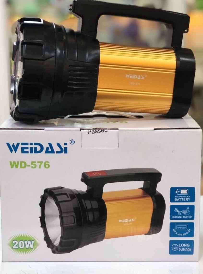 چراغ قوه WEIDASI مدل WD-576 (WEDAJ) یک چراغ حرفهای با طراحی ویژه برای کاربریهای سنگین است. با قدرت نوردهی بسیار بالا (معادل 200W)، این چراغ قوه امکان دید واضح و متمرکز را حتی در تاریکی شب و محیطهای باز فراهم میکند.
